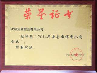2014年度全國優秀企業證書
