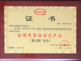 全國質量信得過產品證書