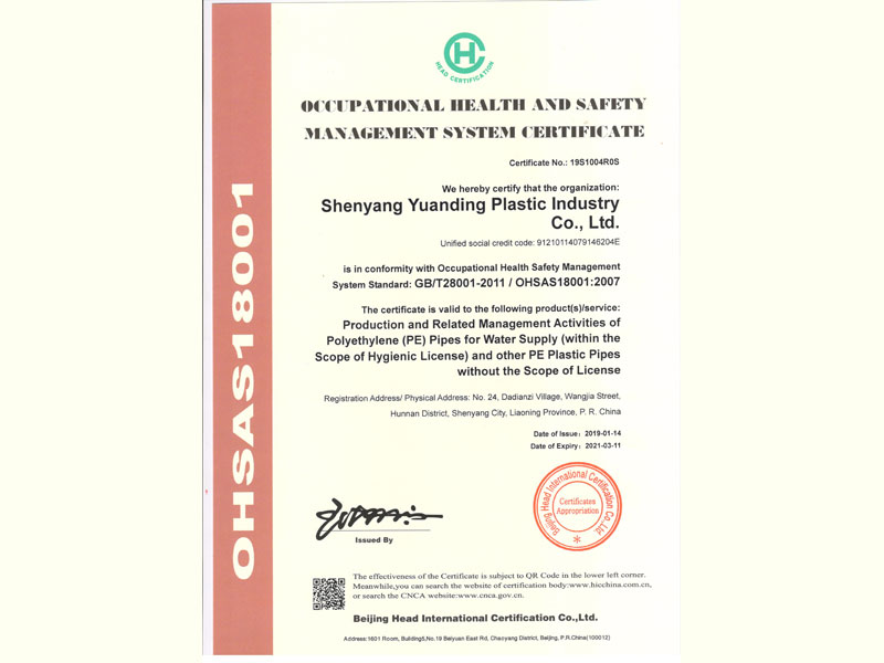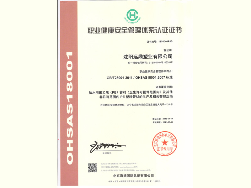 職業健康安全管理體系認證證書