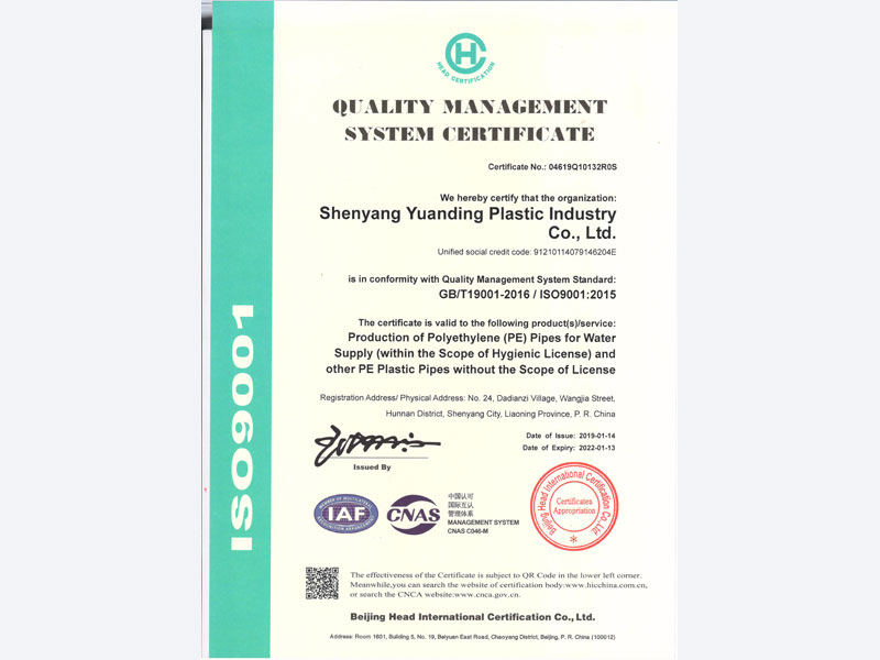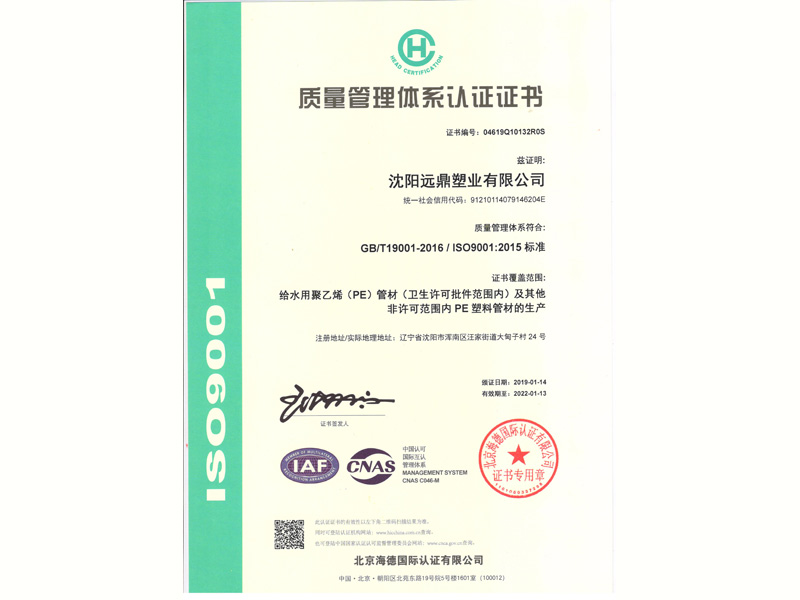質量管理體系認證證書